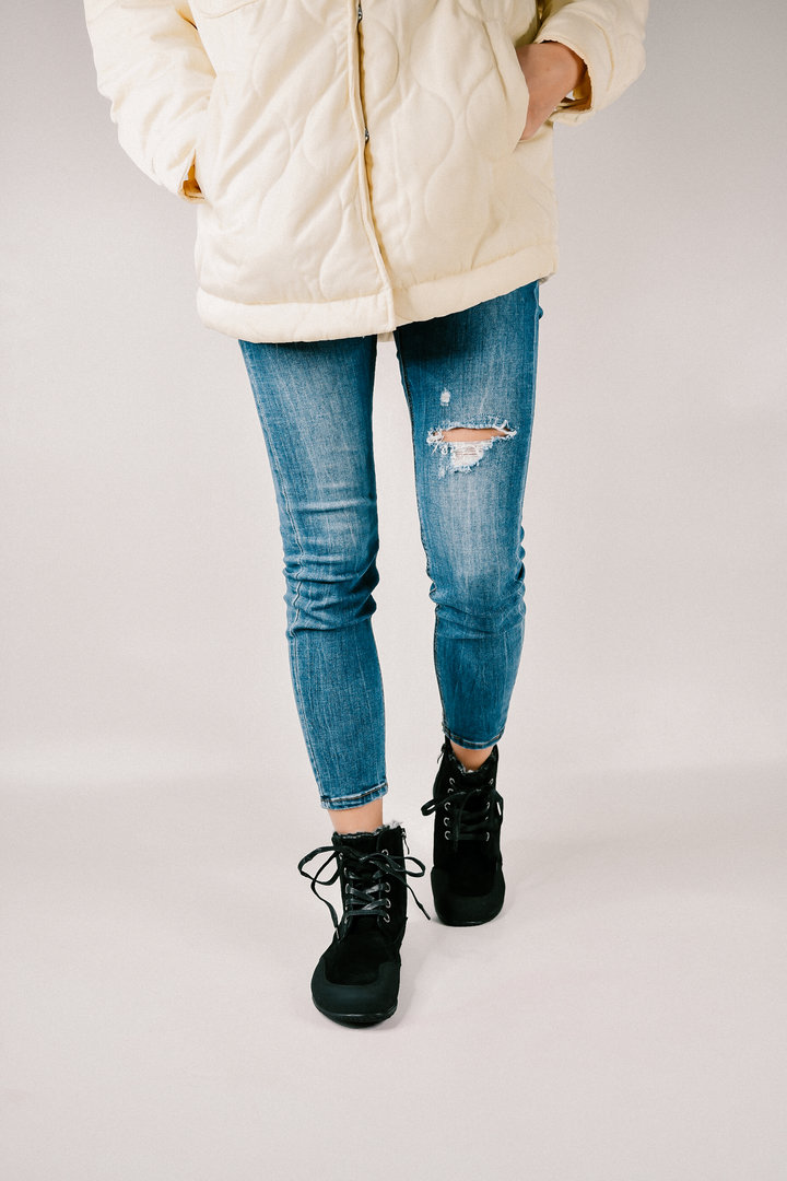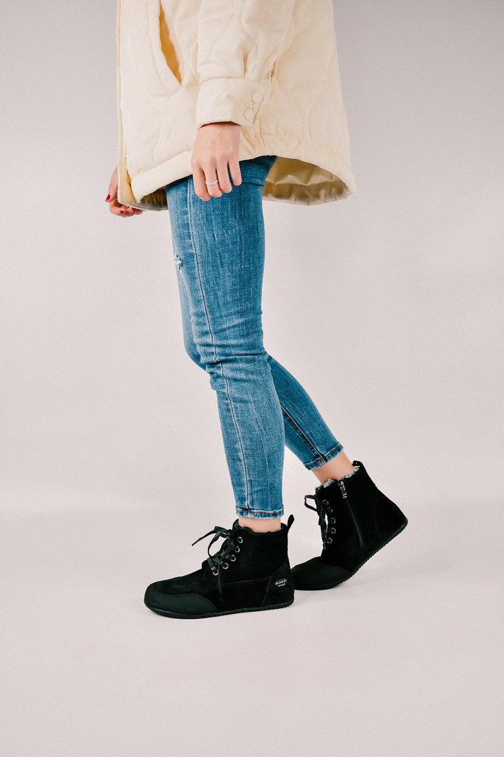 Dámská barefoot kotníková obuv na protiskluzové podešvi, která je odolná a flexibilní. Obuv je doplněna zipem pro snadnější nazouvání a zároveň má pevný šněrovací systém, který umožnuje dokonalé utažení nohy pro maximální stabilitu. Tento model dokonale zahřeje díky kožíšku i hřejivé stélce. Jelikož je na stélce pro větší komfort v zimním období obuv vybavena kožíškem, označujeme ji jako kompromisní barefoot.
