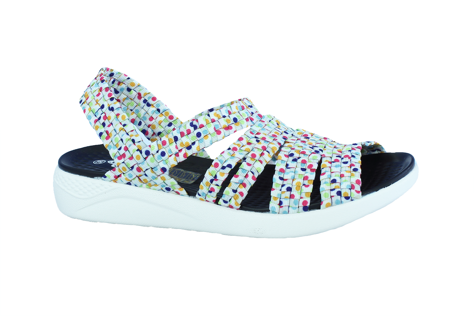 Model ETRURIA je vyroben z elastického materiálu, který je tvořen gumičkami v kombinaci s pevnou textilní stuhou. Svrchní část obuvi je spletena tak, že vytváří velmi příjemný, pružný a zároveň komfortní pocit a přizpůsobí se každému tvaru chodidla. Je to model vhodný pro každou letní aktivitu .