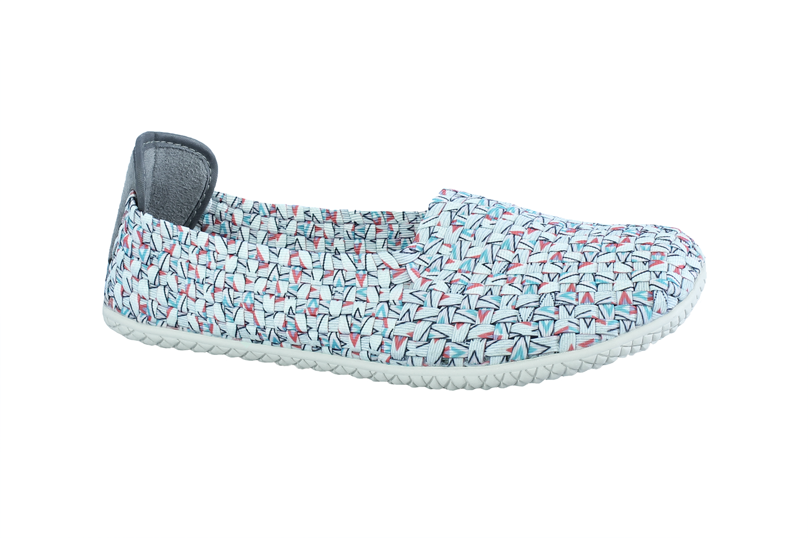 Obuv je vyrobena z elastického materiálu, který je tvořen gumičkami v kombinaci s pevnou textilní stuhou. Svrchní část obuvi je spletena tak, že vytváří velmi příjemný, pružný a zároveň komfortní pocit a přizpůsobí se každému tvaru chodidla. Obuv je vhodná pro denní nošení i volnočasové aktivity.