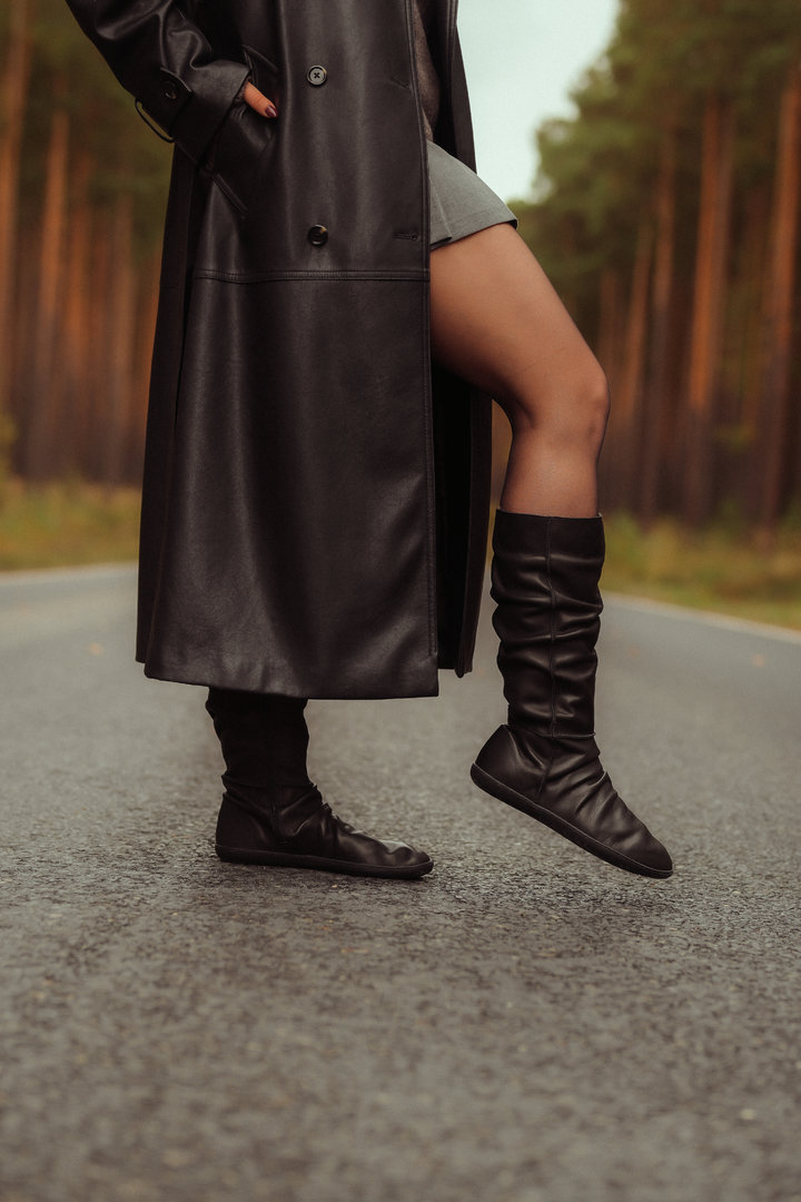 Vysoká bota ve stylu jezdeckých kozaček se zipem až k podešvi pro snadné nazouvání.