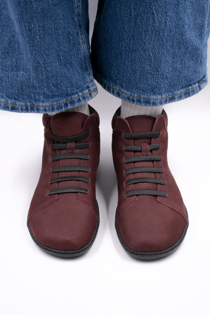Obuv je pro snadnější nazouvání doplněna pružnými gumičkami místo šněrorování.
