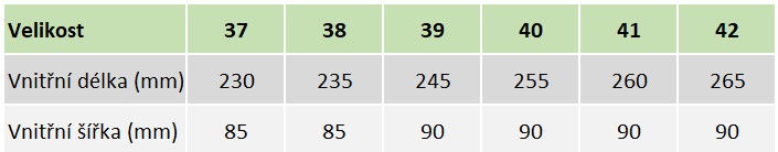 Nedoporučujeme se řídit pouze číslováním, protože se může mírně lišit u každého modelu, a proto je pod každým modelem (v popisu produktu) tabulka s přesně naměřenou vnitřní délkou, abyste si mohli vybrat ty správné boty pro Vás.