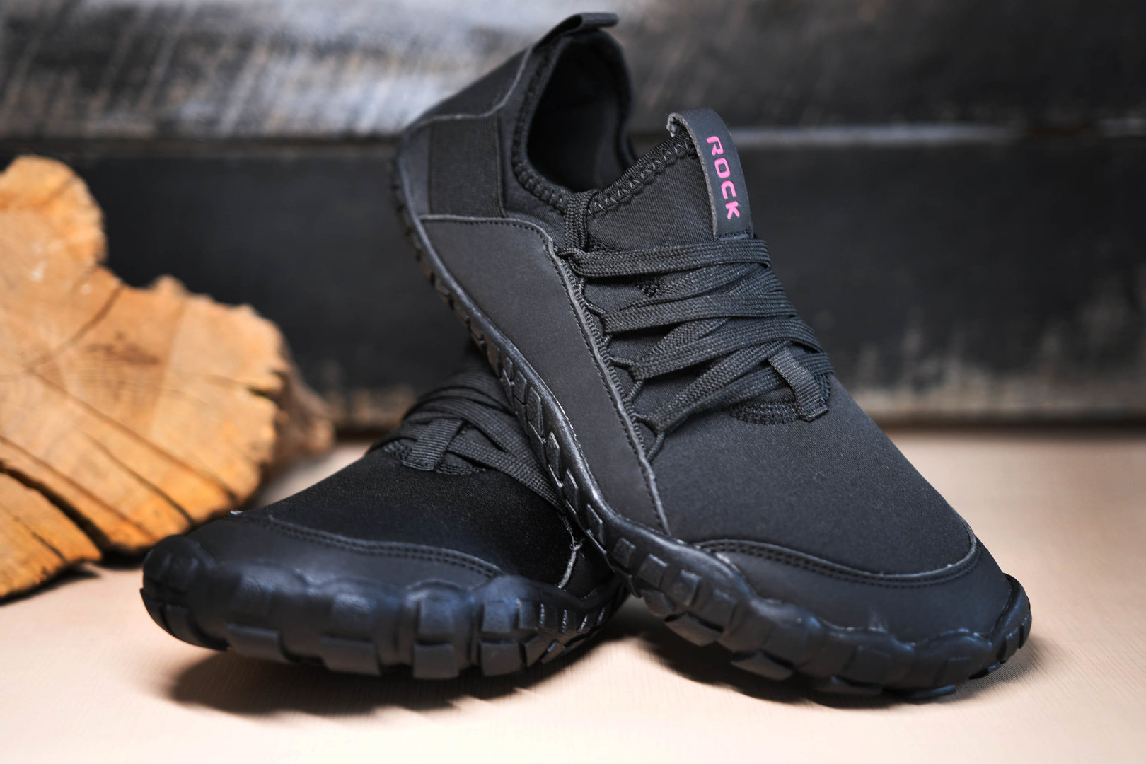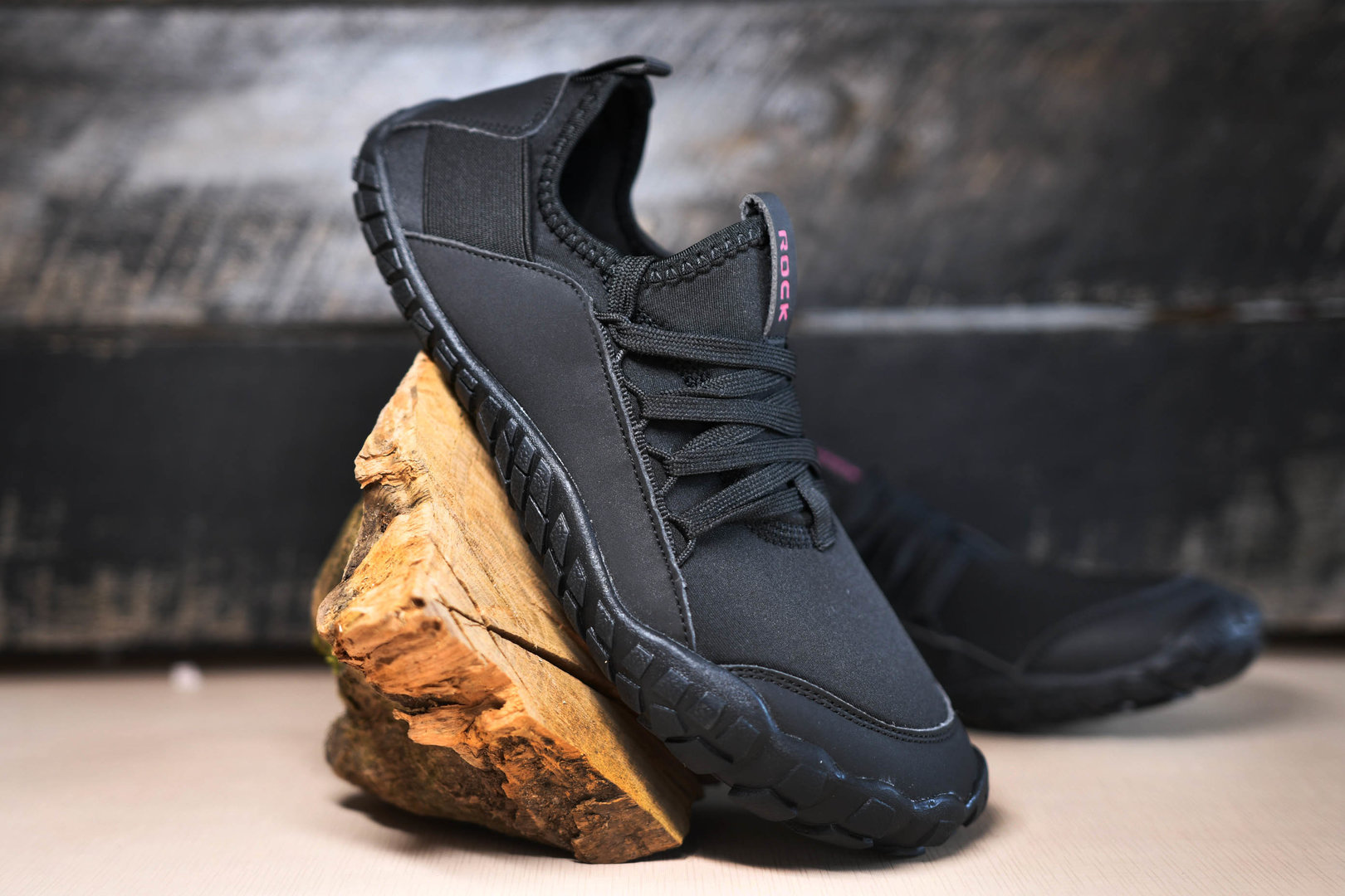 Podešve jsou protiskluzové, pružné a velmi lehké s naším autentickým designem ROCK SPRING.