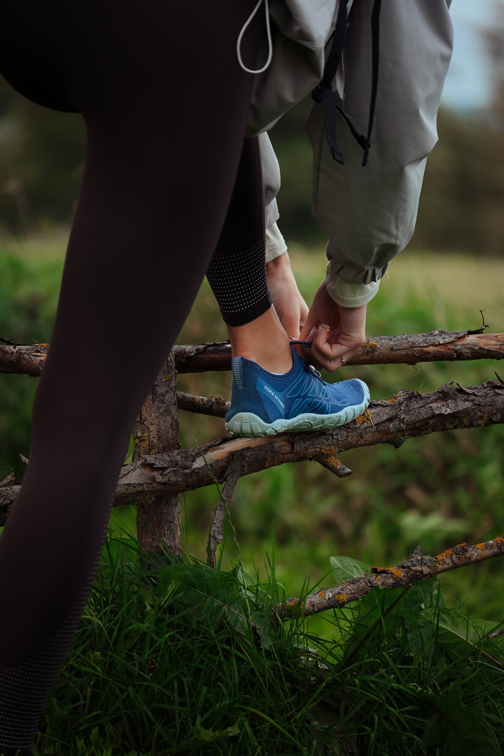 V barefoot obuvi najdete dostatek místa na prsty a tvar boty kopíruje tvar chodidla. Tenká podešev vám umožní vnímat terén po němž se pohybujete.
