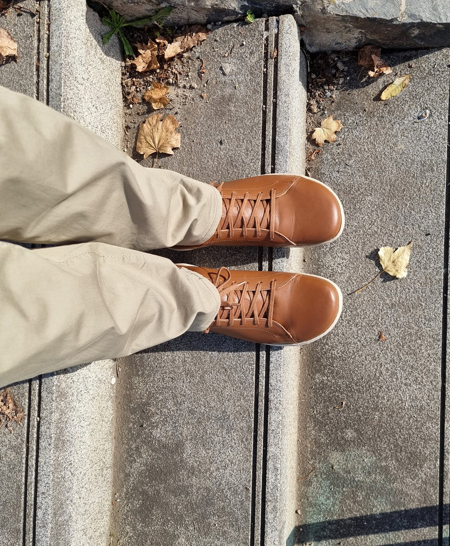 Celokožená obuv HARVYTato barefootová obuv je vyrobena z velmi pevné bůvolí kůže, která zajišťuje dlouhou životnost a odolnost. Výška podešve činí 0,8 cm, což poskytuje skvělou stabilitu a podporu při chůzi. Elegantní styl a precizní zpracování materiálů činí tuto obuv ideální volbou pro celodenní nošení ve městě.